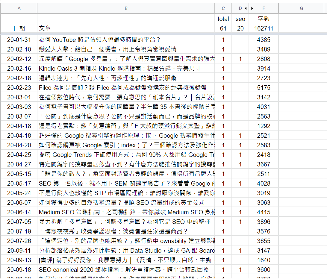 我能寫完 20 篇 SEO 長文,這是我沒想到的。