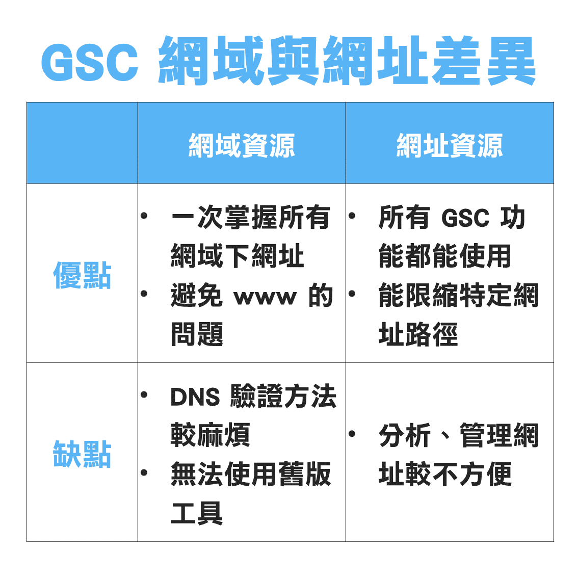 無論選擇「網域資源」或「網址資源」都會有得有失,像是網域資源無法使用舊版網站工具集,但網域資源管理網址更方便。
