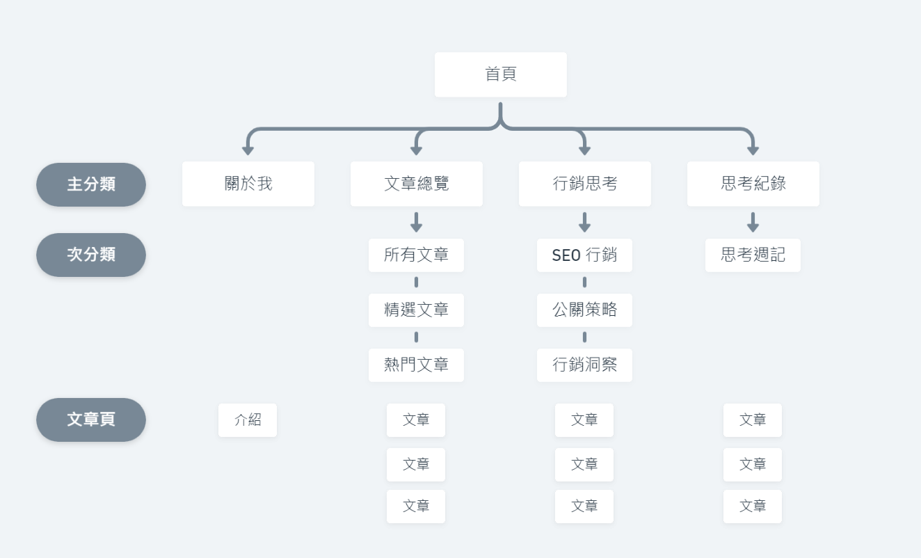 在這裡我簡單拿自己網站做個舉例,讓大家感受一下一個架構還算乾淨的網站,架構會長什麼樣子(當然這不是個最好的例子,大家看個概念就好)。